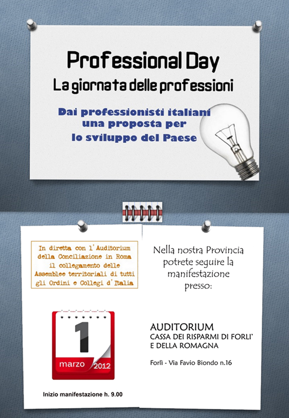 01/03/2012: PROFESSIONAL DAY: LA GIORNATA DELLE PROFESSIONI Presso l'AUDITORIUM della CASSA dei RISPARMI di FORLI' e della ROMAGNA - FORLI' -