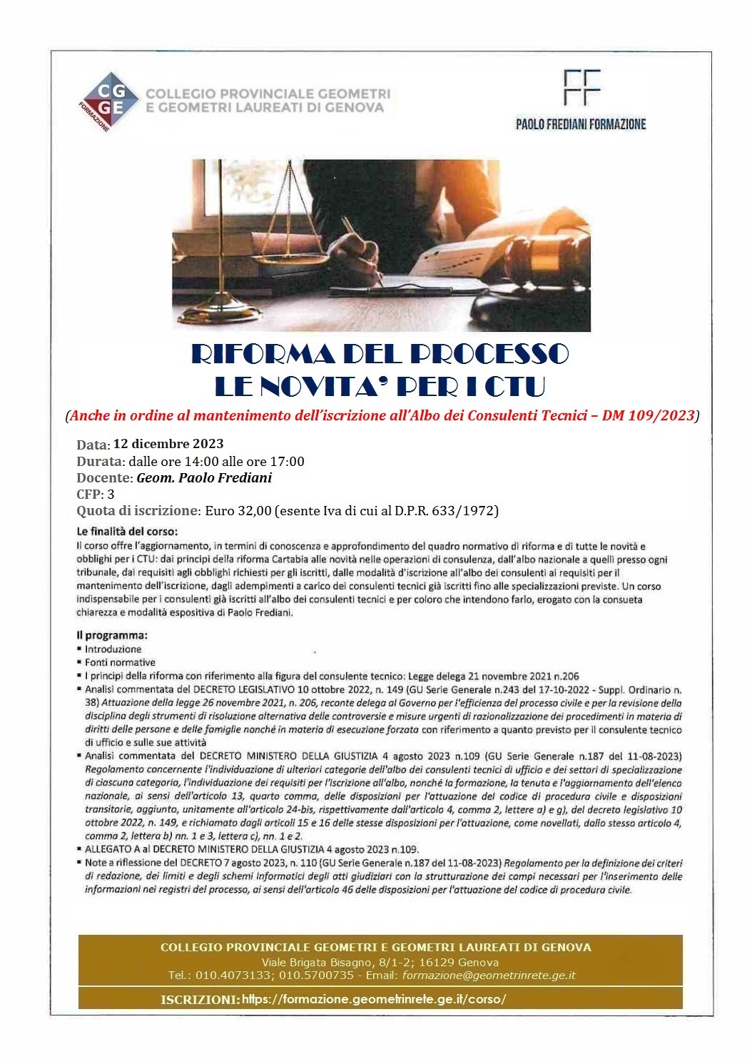 12.12.2023 WEBINAR : Geometri GENOVA : RIFORMA DEL PROCESSO. LE NOVITA’ PER I CTU