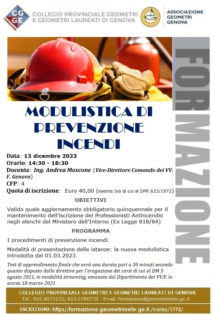 13.12.2023 Geometri GENOVA : WEBINAR : MODULISTICA DI PREVENZIOEN INCENDI
