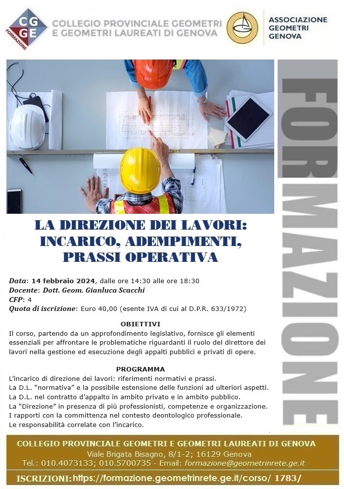 14.02.2024 Geometri GE :LA DIREZIONE DEI LAVORI: INCARICO, ADEMPIMENTI, PRASSI OPERATIVA
