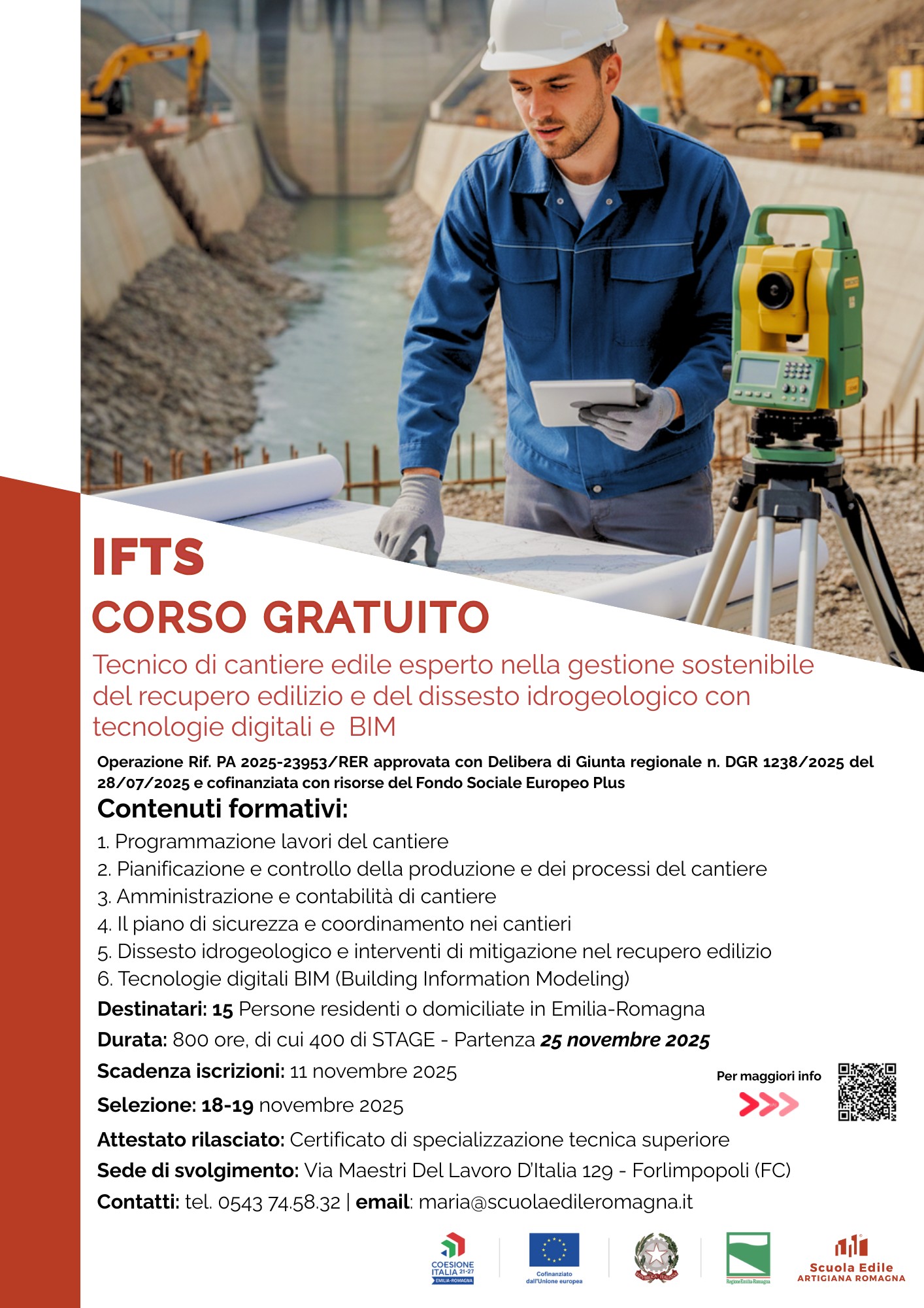 25.11.2025 INIZIO CORSO GRATUITO "TECNICO DI CANTIERE EDILE ESPERTO NELLA GESTIONE SOSTENIBILE DEL RECUPERO EDILIZIO E DEL DISSESTO IDROGEOLOGICO CON TECNOLOGIE DIGITALI E BIM"