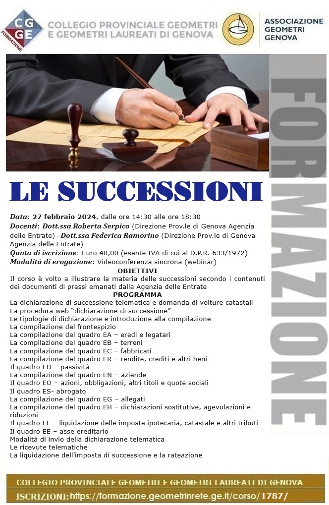Link d’iscrizione: https://formazione.geometrinrete.ge.it/corso/1787/