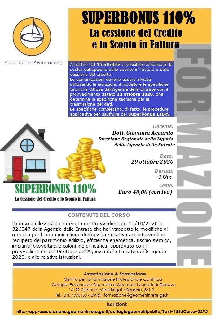 29.10.2020 WEBINAR Collegio Geometri GENOVA : SUPERBONUS 110% La Cessione Credito e lo Sconto in Fattura