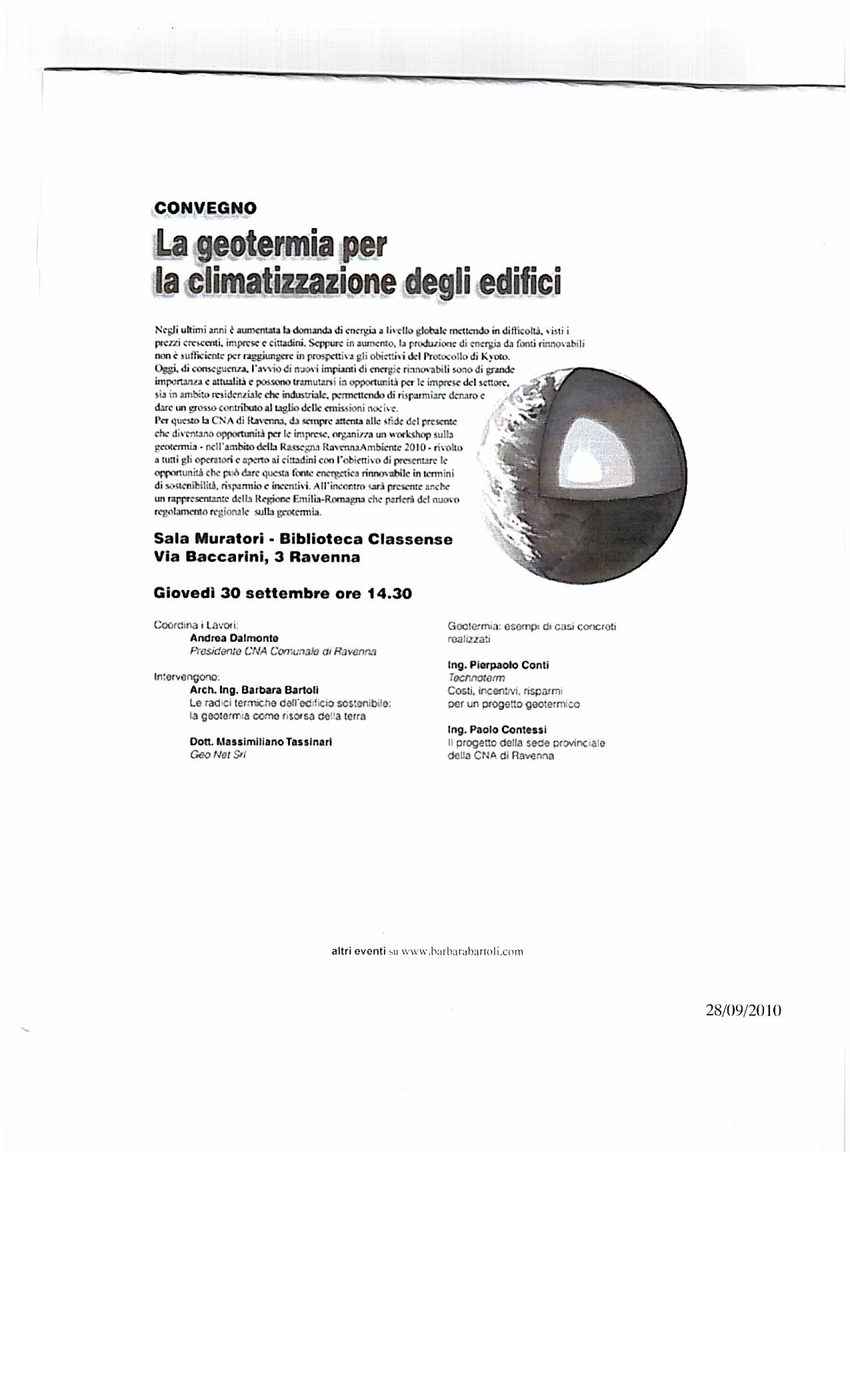 30/09/2010 SEMINARIO a RAVENNA su "LA GEOTERMIA PER LA CLIMATIZZAZIONE DEGLI EDIFICI"