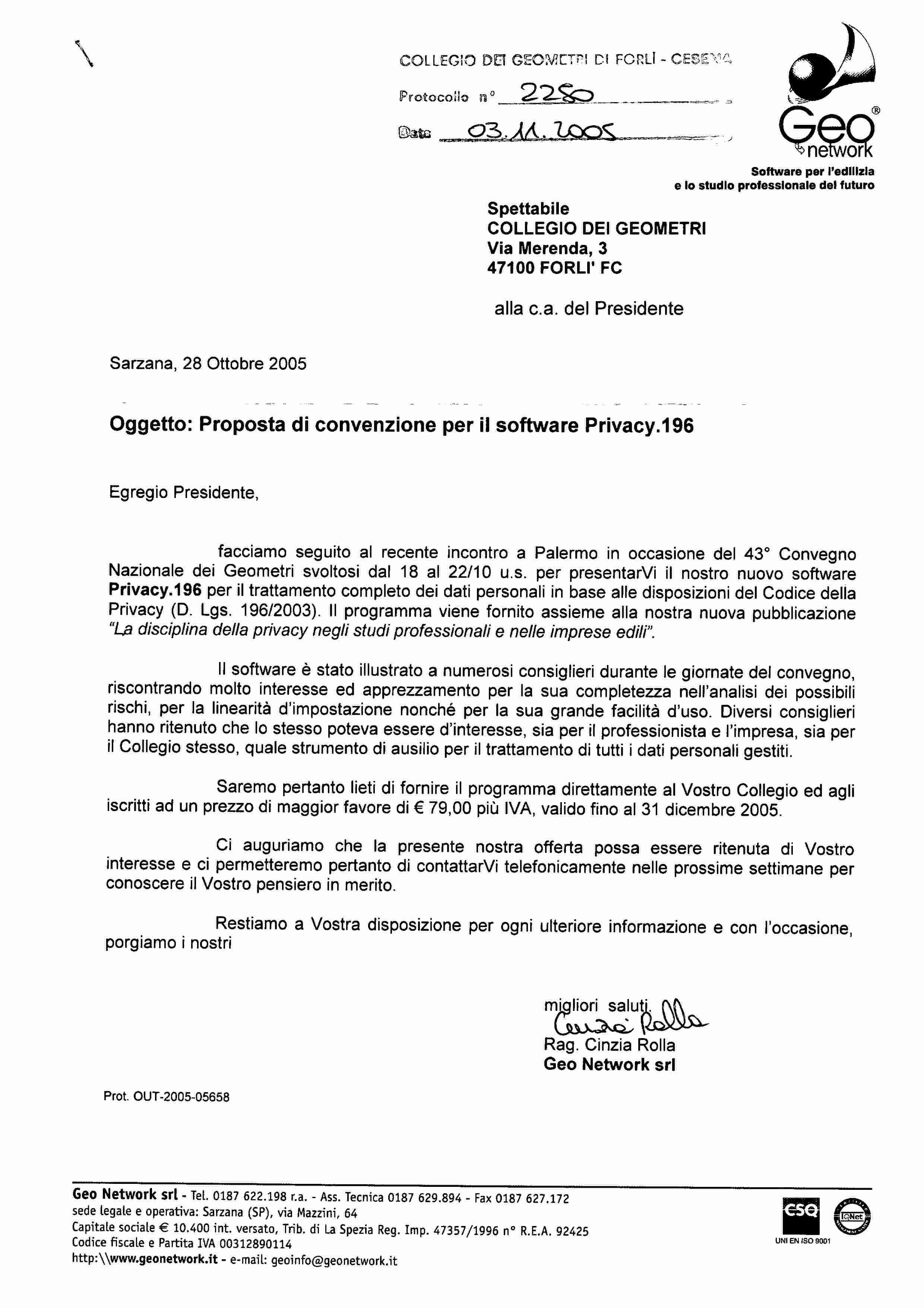 PROPOSTA DI CONVENZIONE PER ACQUISTO SOFTWARE PER ISCRITTI ALL'ALBO VALIDA FINO AL 31.12.2005