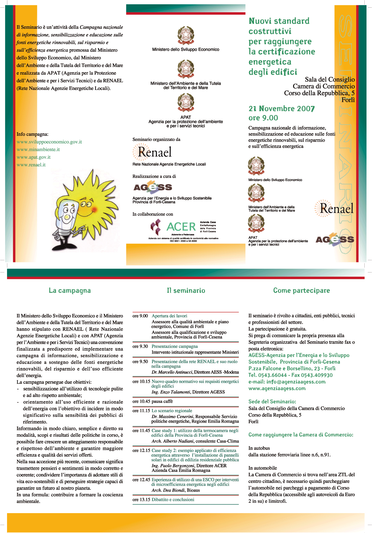 L'AGESS - Agenzia per Energia e Sviluppo Sostenibile della provincia di Forlì-Cesena ha organizzato il seminario di cui all'oggetto, presso la Camera di Commercio in Forlì il 21.11.07 ore 9,00.