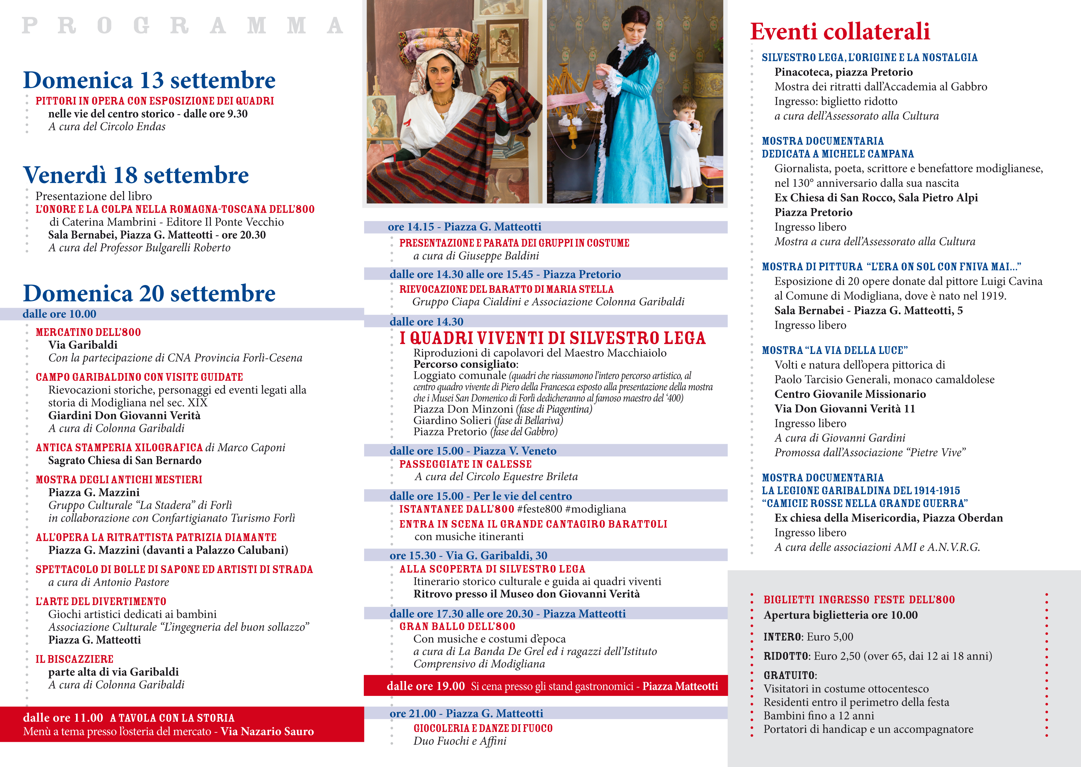 Le Feste dell'800 nascono a Modigliana nel 1997 dopo la grande mostra monografica che il Comune aveva dedicato all'illustre concittadino, Maestro della Macchia, Silvestro Lega.