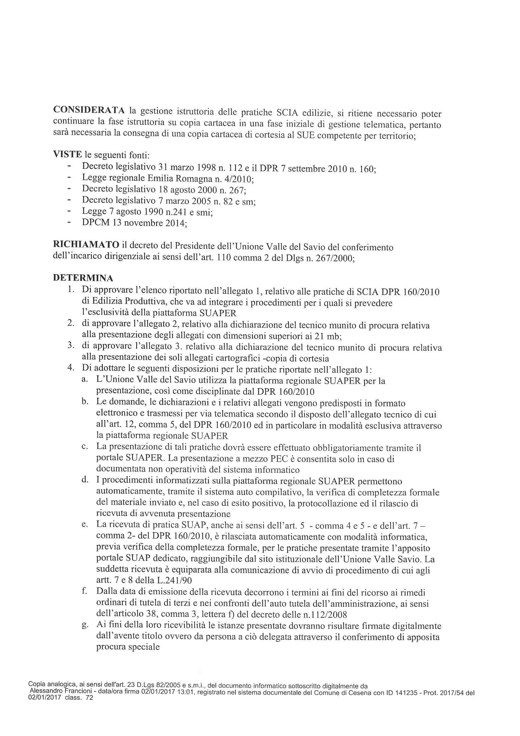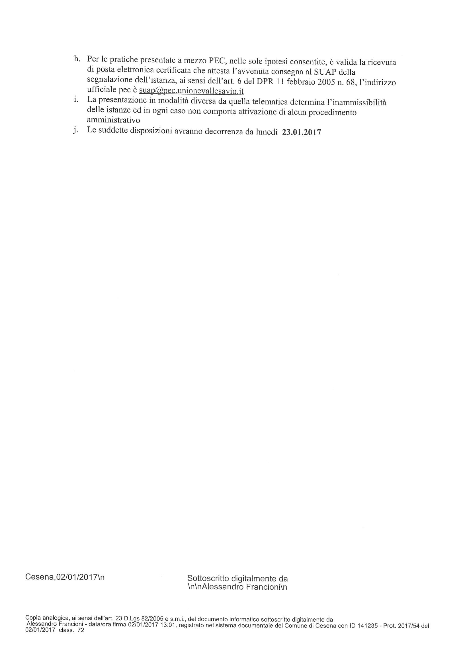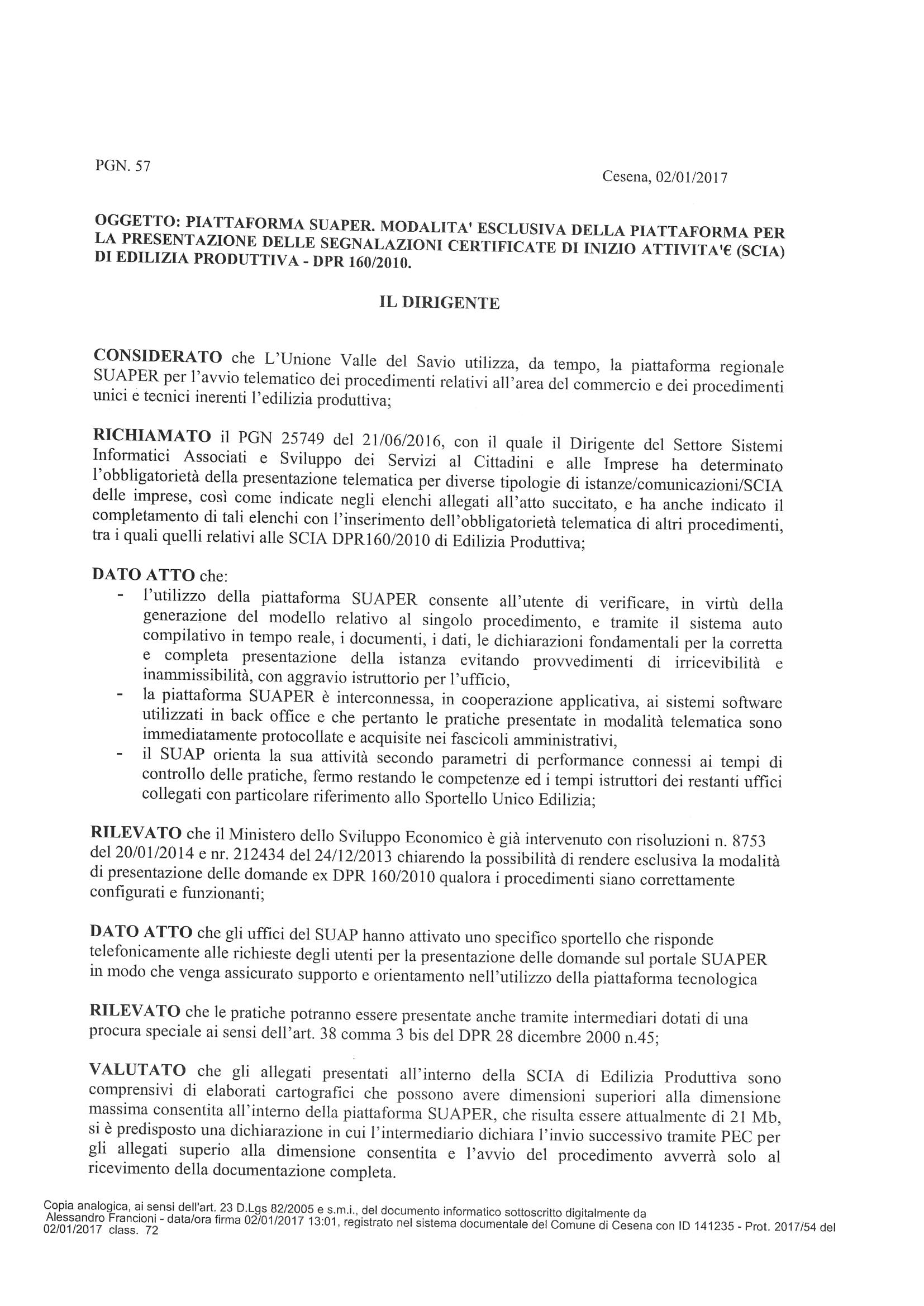 COMUNE DI CESENA - SCIA e procedimenti di autorizzazione - obbligo di presentazione telematica