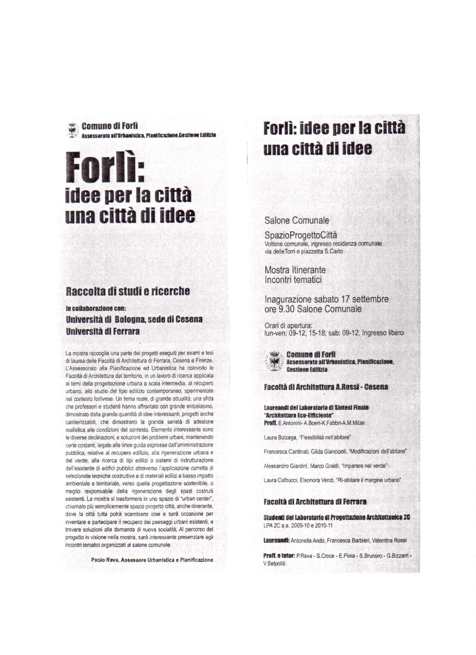 Forlì : idee per la città - una città di idee il 17/09/2011 presso il salone Comunale di Forlì